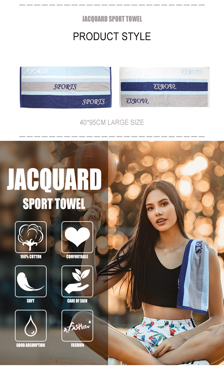 This cotton jacquard sport towels are durable enough for any gym setting, but stylish enough to take to the pool, golfing, and yoga studio