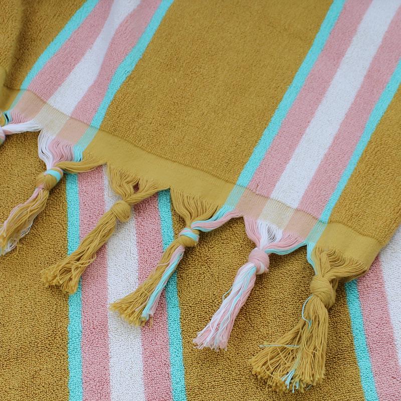 Striped tassel beach towel are made of 100% cotton, making our towels extremely soft and durable. Our towels are uniquely designed by us. Unlike other fluffy towels, ours are ultra-absorbent, super-compact, quick drying and sand-free. Make your beach days more beautiful than ever before with our Towels!